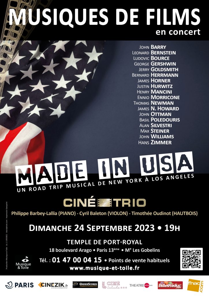 Le 24 septembre 2023 concert du Ciné-Trio dédié aux compositeurs de musiques de films américains
