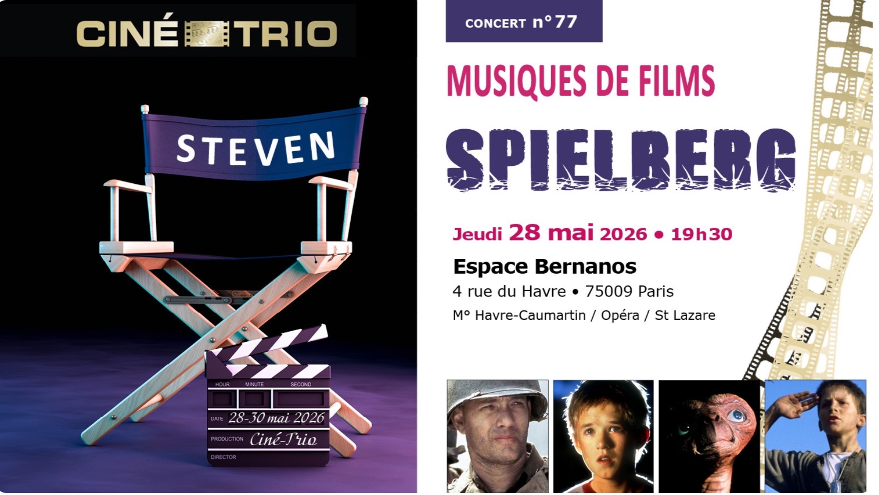 Un concert du Ciné-Trio entièrement consacré au cinéaste Steven Spielberg.
